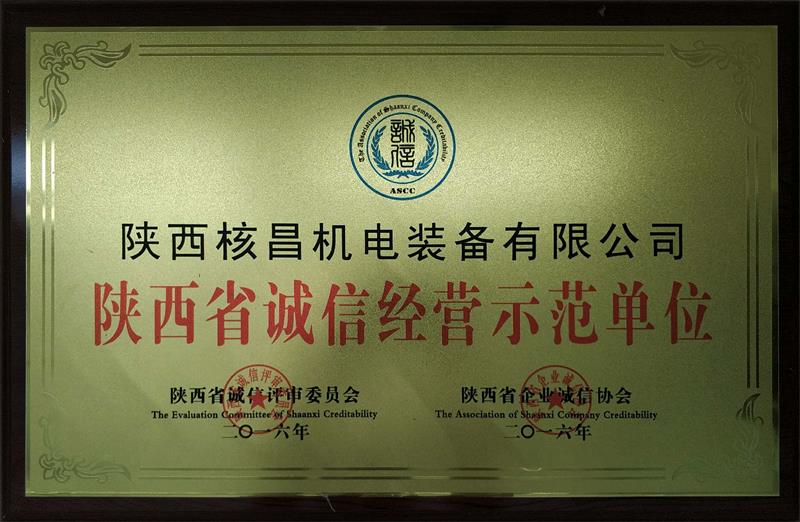 陜西省誠信經(jīng)營示范單位