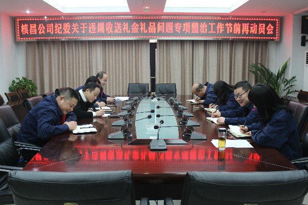 1月30日,正值新春佳節(jié)到來之際,核昌公司紀(jì)委組織公司全體領(lǐng)導(dǎo)班子成員、兩辦負責(zé)人在公司小會議室召開會議,就集團公司關(guān)于違規(guī)收送禮金問題專項整治工作相關(guān)通知精神進行傳達。會...