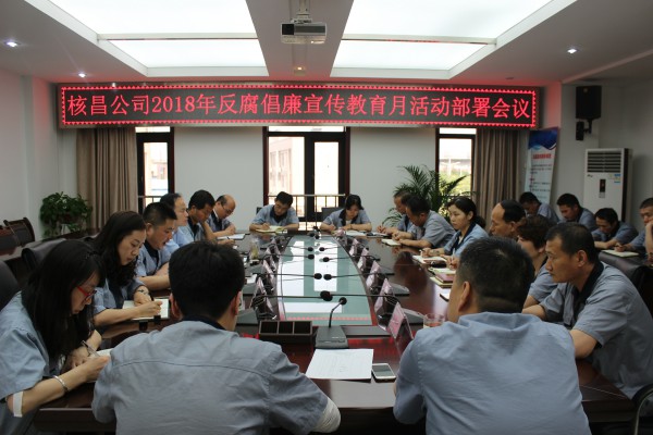 2018年5月25日,為深入落實全面從嚴治黨,嚴守黨的規矩,增強黨員干部廉潔自律意識,推動公司監察工作又好又快發展。核昌公司召開2018年反腐倡廉宣傳教育月活動部署會議。核昌公司領導...
