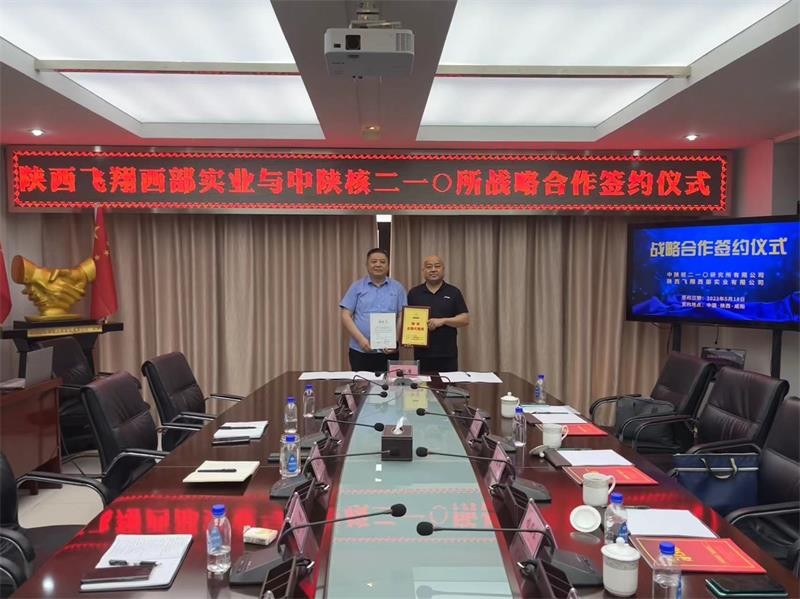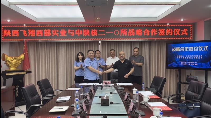 5月18日,陜西飛翔西部實業(yè)有限公司董事長白亞偉、總經(jīng)理程海東、常務(wù)副總張玉忠一行到中陜核集團(tuán)二一〇研究所交流座談,并簽署戰(zhàn)略合作協(xié)議。二一〇研究所董事長王超宏、總經(jīng)理李偉、副總經(jīng)理楊艷和相關(guān)部門負(fù)責(zé)人出席座談會。