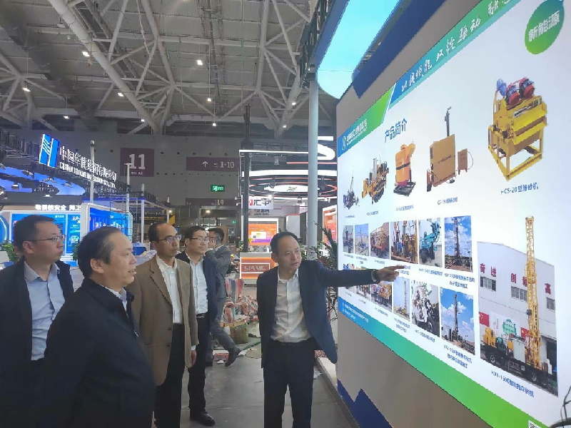 展會(huì)上,公司黨委書記、董事長王超宏向集團(tuán)公司一行領(lǐng)導(dǎo)及觀展人員詳細(xì)介紹了參展設(shè)備的性能、主要特點(diǎn)及適用范圍。參展的HXY系列拖車鉆機(jī)組是專門針對(duì)砂巖鈾礦地質(zhì)勘探和開采孔研制的升級(jí)產(chǎn)品,在人機(jī)協(xié)調(diào)、安全性、操控性能上得到了充分提高,杜絕了全液壓巖心鉆機(jī)功耗大、維修要求高的缺點(diǎn),能夠滿足繩索取心的工藝要求。與國內(nèi)外同類鉆機(jī)相比,在進(jìn)尺速度、上下鉆速度、孔底壓力控制、鉆進(jìn)參數(shù)顯示和控制方面具有顯著的特點(diǎn)。目前,該系列產(chǎn)品已廣泛應(yīng)用于核工業(yè)203所、核工業(yè)243大隊(duì)、核工業(yè)208大隊(duì)等野外施工。