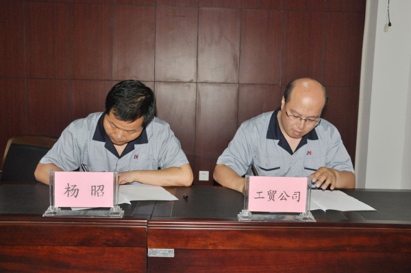 接著副總經(jīng)理楊昭與咸陽工貿(mào)公司簽定了2015年度經(jīng)營目標(biāo)責(zé)任書和安全生產(chǎn)、安全保衛(wèi)責(zé)任書。