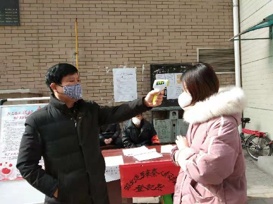 防疫就是責(zé)任,核昌公司的防疫班子迅速做出指示:小區(qū)封閉部分側(cè)門,留主出入口,設(shè)檢測(cè)點(diǎn)對(duì)來往人員進(jìn)行登記,限制外來車輛進(jìn)入小區(qū);為嚴(yán)查武漢返鄉(xiāng)、來訪人員,物業(yè)客服人員對(duì)業(yè)主挨家挨戶進(jìn)行電話訪查。公司中層干部黨員輪崗值班,每天由兩名中層干部從早8點(diǎn)到晚8點(diǎn)12小時(shí)在小區(qū)門衛(wèi)處盤查小區(qū)出入人員,并使用紅外測(cè)溫儀測(cè)量進(jìn)入小區(qū)人員的體溫。